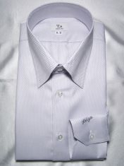 2026年1月10日受注 東京・荒川区のT.K様 新規の女性のお客様ですが国産ストライプで襟型はセミワイドカラーになります。クレリックカラーで白が映えますね。(^^♪