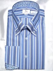 2026年1月24日受注 東京・品川区のK.T様 常連のお客様ですがモンティで襟型はマイターカラーボタンダウンになります。綺麗なストライプですね。(^_-)-☆